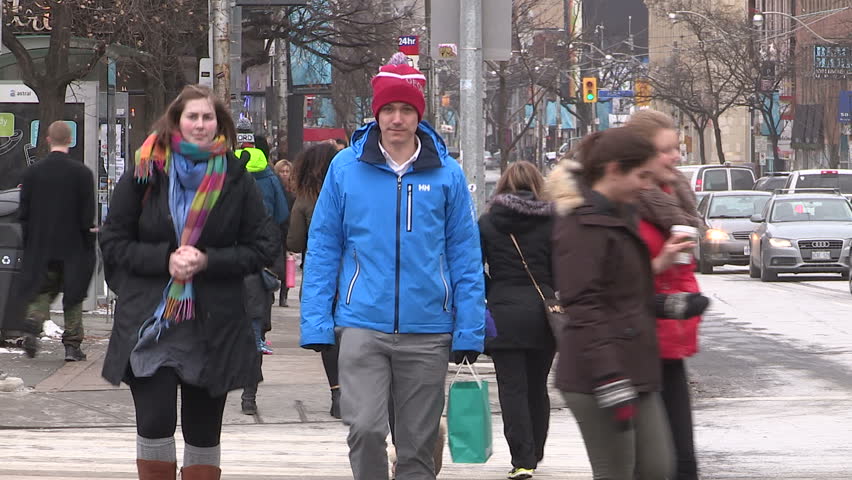 During The End Of Winter People Walking In Downtown Toronto Stock