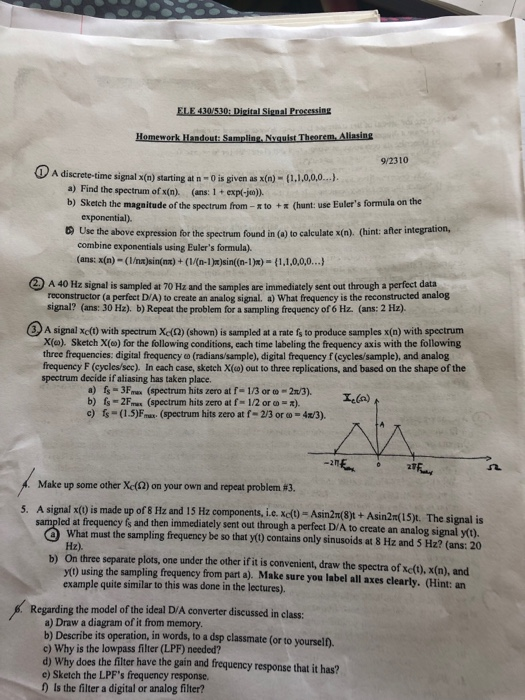 Solved Ele 430 530 Digital Signal Processing Homework Ha