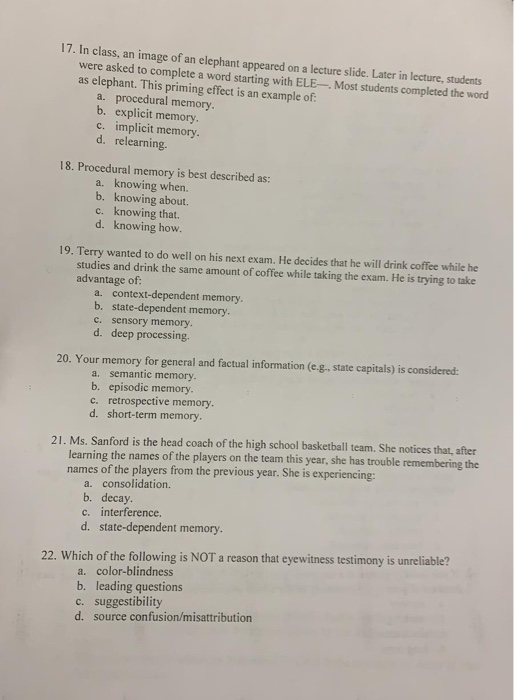 Solved 17 In Class An Image Of An Elephant Appeared On